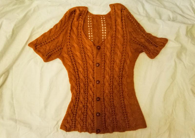 оранжево-коралова кофтинка, розмір S, на літо. не надто гріє, зате красиво :) робила мама, професійна кравчиня!