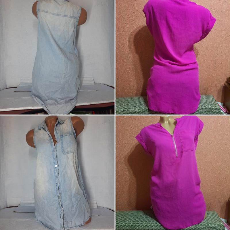 По 75грн 1. Малинова. В ідеальному стані, розмір 34, гарний малиновий колір, груди 90см, талія 88см, нижня частина 98см, довжина 75см, буде на розмір С 2. В хорошому стані, без пояса, розмір С, ну дуже класна, легка, не парить, можна на такі літні спекотні дні, груди 94см, талія 96см, нижня частина 102см, висота спереду від плеча 73см, ззаду 83см від коміра