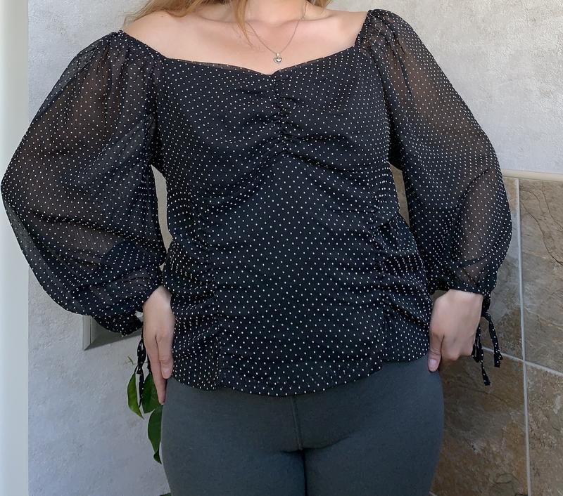 Легка шифонова блуза в горошок з пишними рукавами