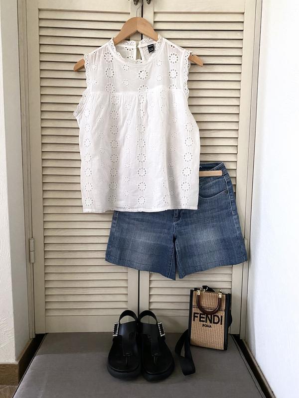 Блуза без рукавов из ришелье. Идеальный топ для лета. Хорошо смотрится и с шортами и джинсами или брюками. Подходит для города и отдыха. Ориентируйтесь по измерениям. Длина 47 см Полуобхват груди 44 см