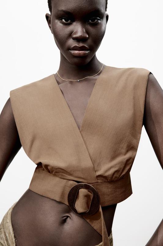 Zara укороченный топ без рукавов разрезом сзади и эластичным низом с пряжкой