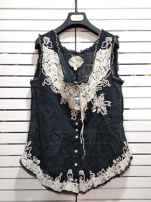 Size : L . Тончайший хлопок с льняной структурой и вышивка . Отличное состояние. Под руками 48 , талия 43 ,длина 55