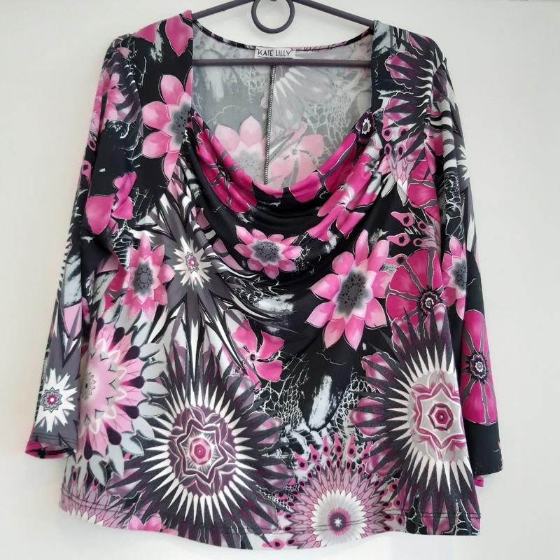 Кофточка-блуза в квітковий принт зі срібним напиленням, розмір 16/18