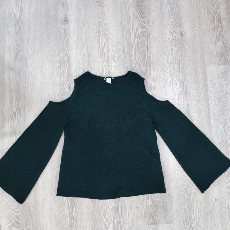 - красива блузка, підійде як на свято, так і на кожен день - глибокий темно смарагдовий (зелений) колір (краще видно на другому фото) - розмір S, буде добре і на М - відкриті плечі, розширений рукав