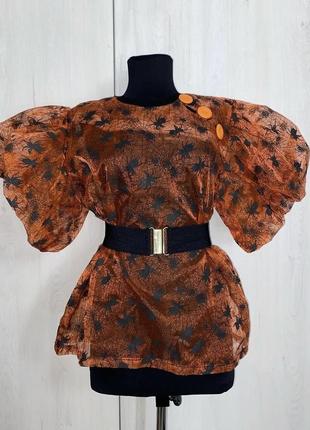 Шикарная блуза, только посмотрите на данную модель, на эти рукава, пышные нереально. Принт в павучки😻 Продается без ремня. Размер 14, длина 62, пог 52.