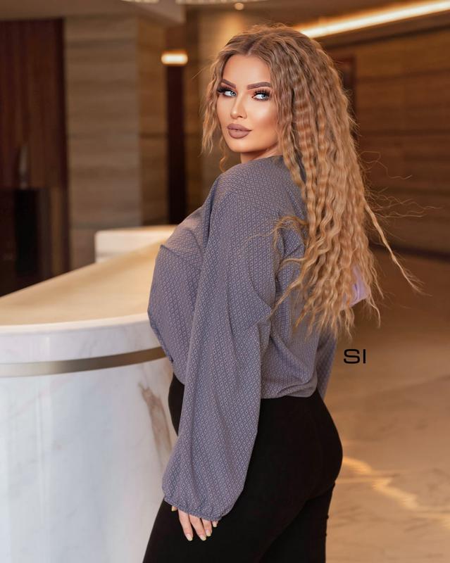 Блузка жіноча 773.3 Матеріал – софт-котон. Розміри : XL(52-54) , XXL(56-58) Виміри по виробу: ...........ОГ.....ДВ....ДР XL.....110.....58....58 XXL...116.....60....60 ОГ - об'єм грудей ДВ - довжина виробу ДР - довжина рукава