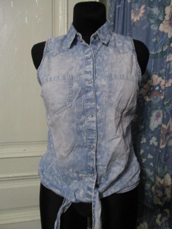 блузка джинсова.блакитного кольору.бавовна.джинс-тонкий.ПОГ 46.довжина 60 см