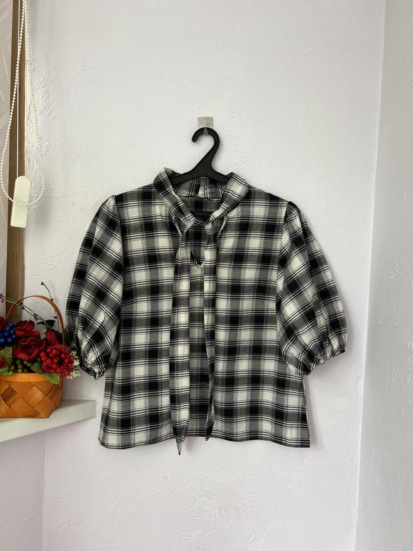 Стильна блуза обʼємні рукава Принт клітка Виріз на завʼязках Натуральна тканина Стан ідеальний Заміри Довжина-55 П.о.г-53 Рукав-33 Рукав ширина-26 Плечі-37