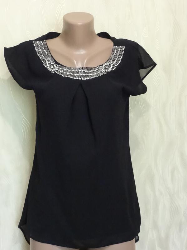 Шифонова блуза з гарним декором по горловині F&F в ідеальному стані. Тканина складу поліестер, не світиться. Розмір написаний 6 йде на 8 , дивіться виміри ПОГ 41см ПІТ 41см ПОБІДИ довжина 49см 74см Висилаю Новою поштою або укрпоштою (якщо доставка укрпоштою, то +25грн. до ціни).