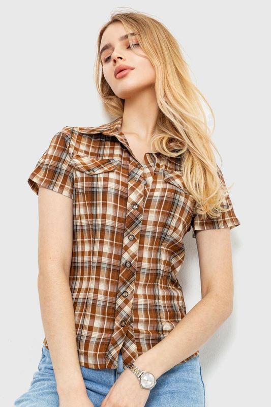 Сорочка жіноча в клітку повсякденна колір коричневий 230r062