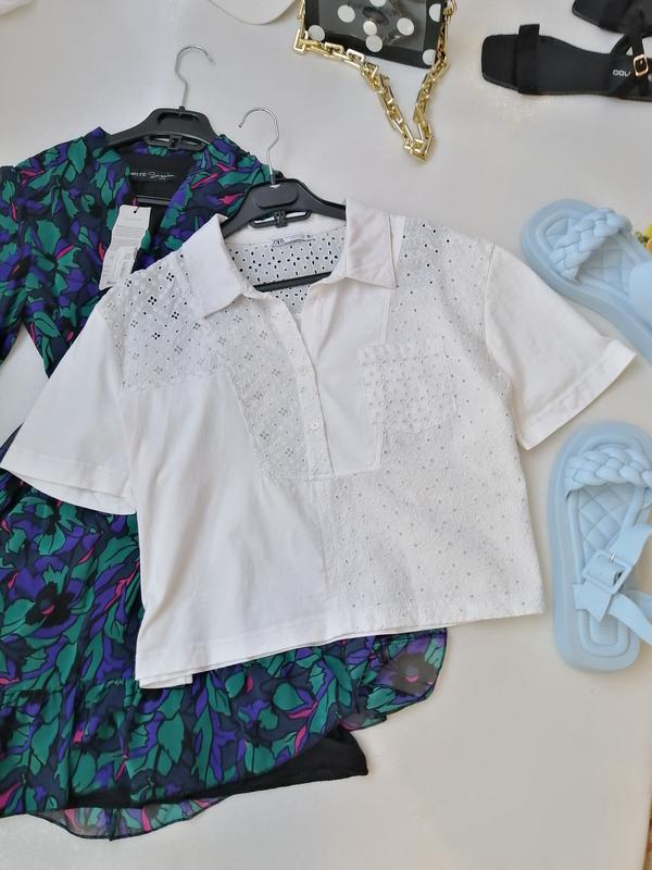 Трикотажна футболка блуза zara прошва з натуральної бавовняної тканини. трикотажная футбол...