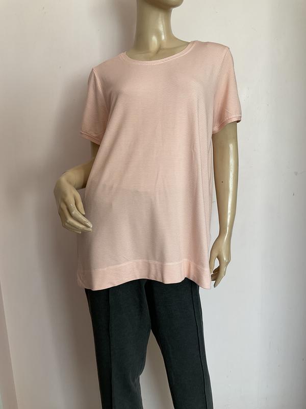 Прыемний середній Трыкотаж .тягнеться, без дефектів . Заміри в грудях 58-60 см низ 62-64 см довжина 69 см в плечах 43 -45 см 4:10:23