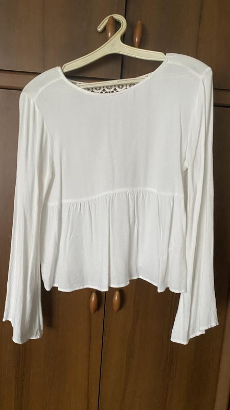 Блузка молочного кольору з широкими рукавами. Ззаду на спині мереживо. Приємна до тіла. Дивіться інші пропозиції за вигідними цінами.