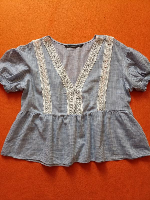 Топ-блуза Zara Basic як нова, не вистачає тільки бірки🤩 Розмір L Заміри: довжина виробу - 54 см; довжина рукава - 16 см; напівобхват в грудях - 52см.