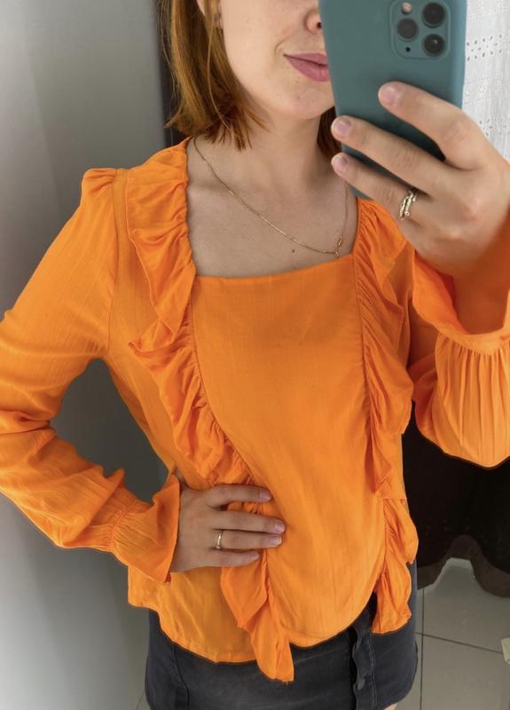 Блуза помаранчевого кольору з рюшами. Розмір в наявності - М