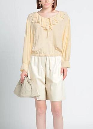 Блузка у богемному стилі, з довгим рукавом, креп, рюши, манжети на гудзиках, комір з бантом, без кишень, дорогий бренд