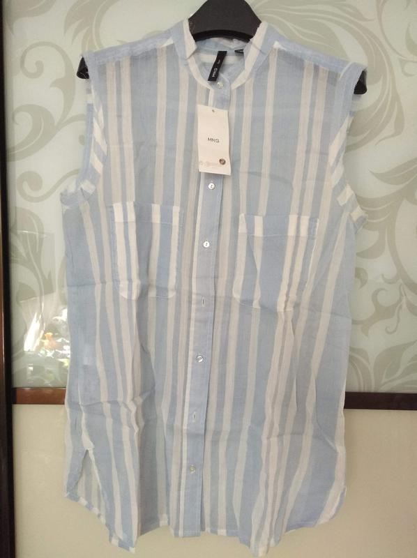 Блуза легкої тканини. Смужка-блакитна та біла. 2 накладних кишені. Застібається на гудзики . Блузочка підійде і на розмір S, большемерит, на бирці xs. Заміри: Довжина по спинці-70 см, пог-48 див.! При купівлі 2-х і більше речей, доставка Укрпоштою - БЕЗКОШТОВНО ! Склад: 100% бавовна Доставка: Передоплата на картку або готівкою при зустрічі в Києві.