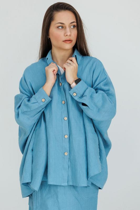 Лляна сорочка-пончо vil'ni салінас блакитний 64