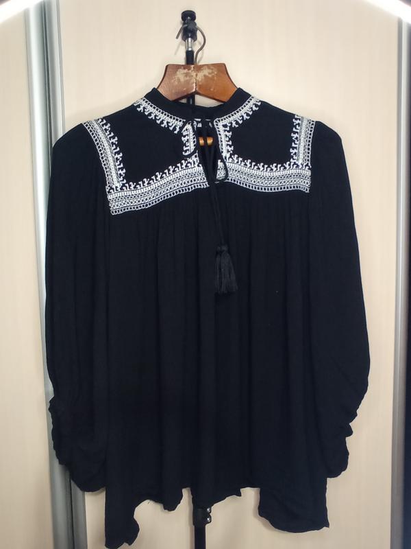 Блузка чорного кольору з вишивкою від Mango 🖤 Розмір - S( oversize) П/Г - до 80 Довжина - 70 Рукав- 51