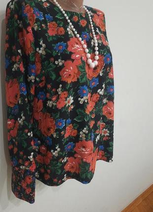 Новенька, яскрава блуза на дівчину 46р. довжина від плеча до низу 64см, довжина рукава з плечем 71см, ширина під пахвами 49см. На спині та манжетах кнопки, показано на останньому фото.