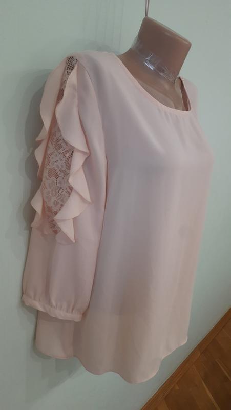 Новенька, ніжна блуза на дівчину 54р. Довжина по спинці 62см, довжина рукава з плечем 56см, ширина під пахвами 58см.