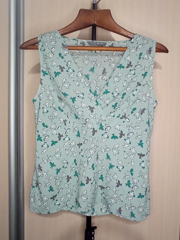 Блуза м'ятного кольору 💚в принт 🕊️ 14 розмір п/Г -45 п/т- 44 довжина -62