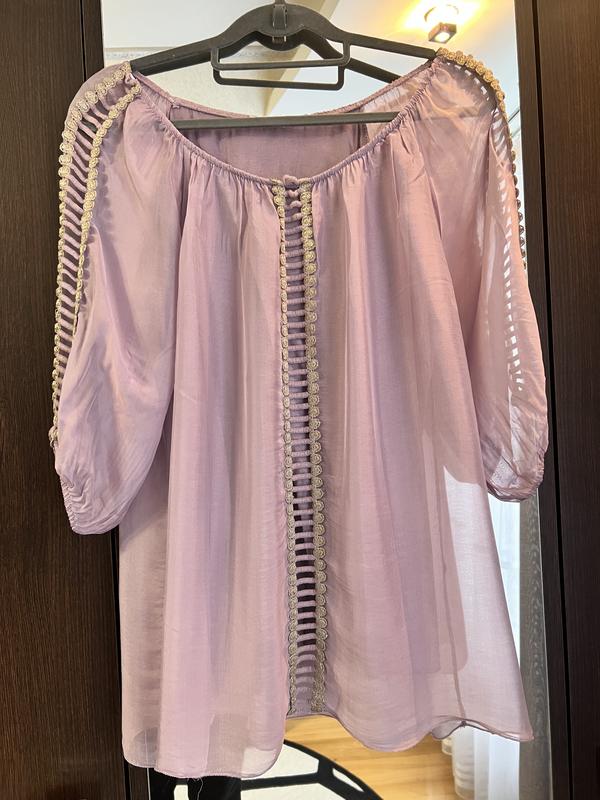 Блуза італійська, з натурального шовку, бузкового кольору. Довжина 65, ПОГ 57