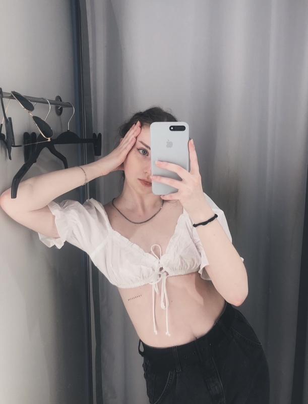 Розмір s, без дефектів, дуже гарний, посередині на завʼязці, не стягується, одягала до 5 раз