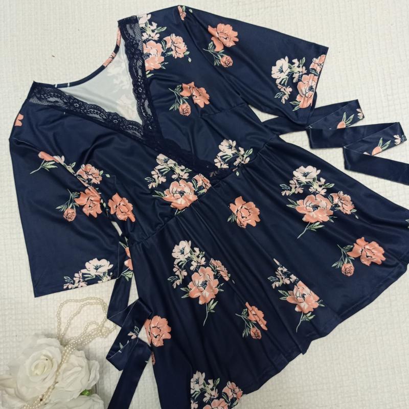Блузка в квітковий принт з мереживом, верх на запах,пояс резинка,з поясом, тканина поліестр,нове без бумажної бірки Розмір вказаний XL Заміри на фото , тягнеться