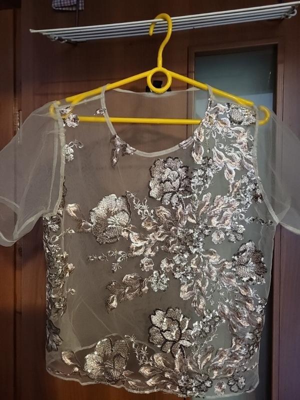 Дуже красива блуза ,вишиті квіти паєтками Нехай ваші покупки принесуть вам радість Зі мною можна торгуватися Якщо у Вас виникли запитання, чи потрібне додаткове фото чи виміри, пишіть- я з радістю відповім. Деякі фото роблю зі спалахом(вспишкою),тому колір може змінюватися. (Розміри робляться вручну, можливі похибки + - 1см) Оплата 100% на картку при оплаті враховуйте комісію банку та терміналу Перш ніж брати реквізити, все добре заміряйте і обдумайте Всім вдалих покупок.