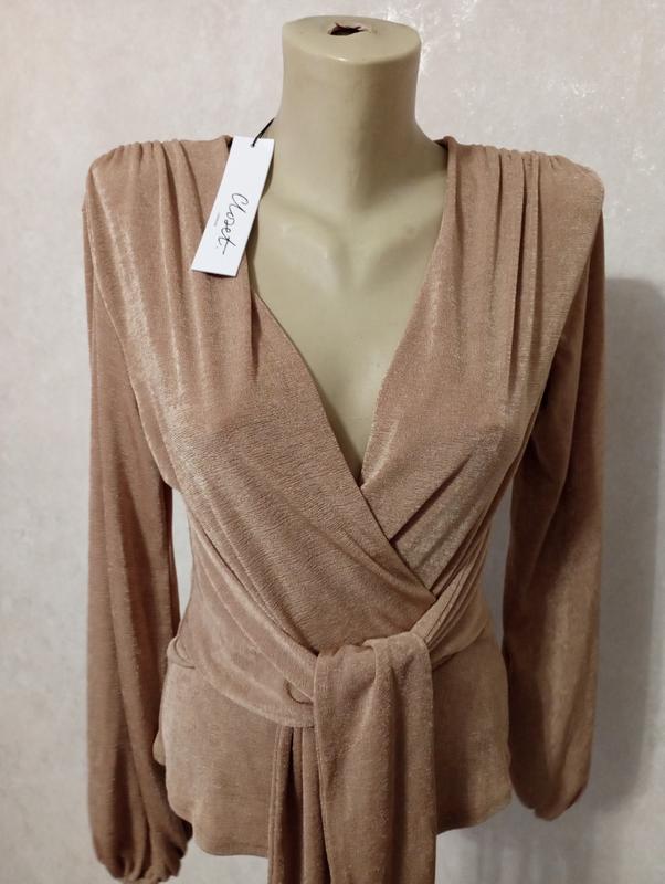 Продам шикарну нарядну блузу коричнево бежевого кольору . Рукав об'ємний знизу на резинці. тканина еластична . Підійде на М,L, невеличку Хл. заміри надам.