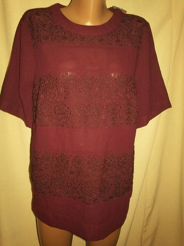 Блуза з мереживом TU р-р14,поліестер, ПОГ55, за низу57,дл 66, колір темніший, нова з цінником, 110грн