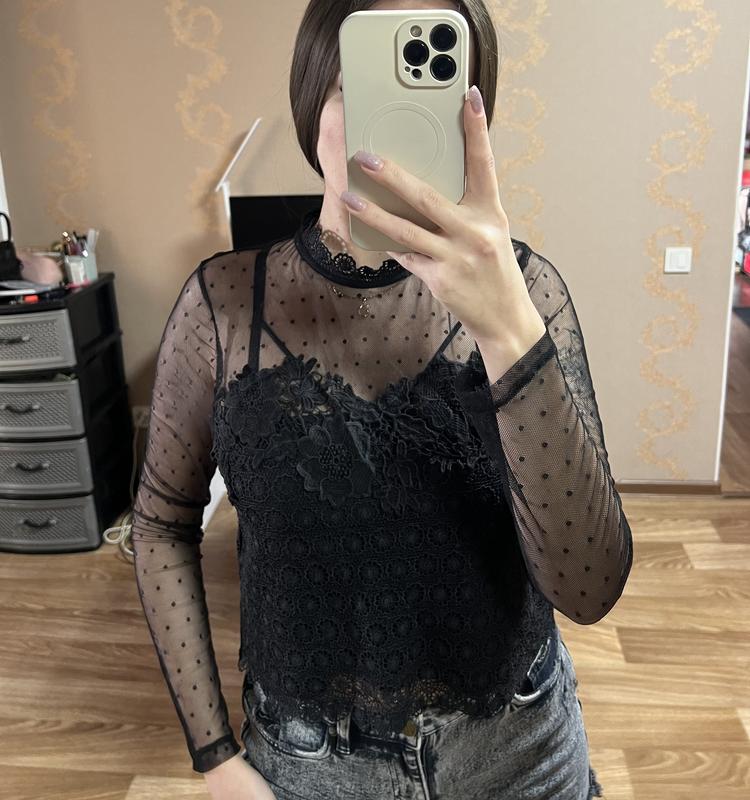 Очень красивая и качественная кружная блуза, без дефектов, ширина в груди под руками 47 см, на размер М или L
