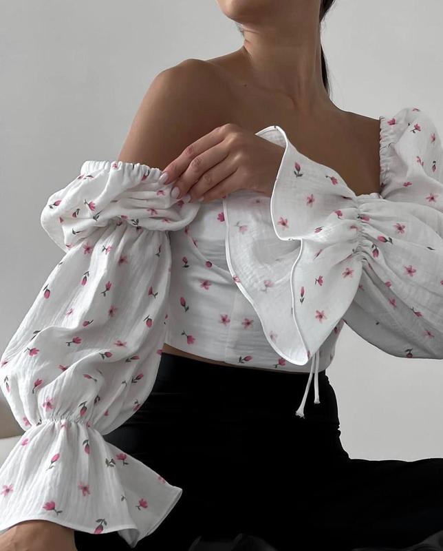 Топ 📌Мод 1062 kri 📌Тканина - муслін принт 📌Розміри - 42-46 📌Кольори - білий і персик 🔝 Топ з натуральної тканини( в складі 100% бавовна) 2 принти на вибір, дуже гарно лягає по фігурі і підкреслює груди і талію 🥰 Супер якість ♥️ Відмінна якість ♥️