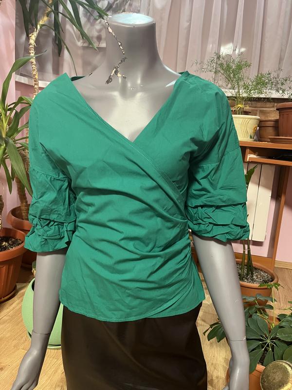 Блуза марки NLY Trend с оригинальными рукавами, на запах, цвет более зеленый, чем передает камера