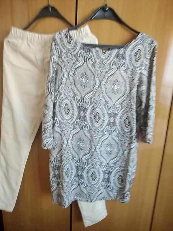блуза штапель пог47см,довж.75см,рукав дов.36см,штани котон стрейч пот35/45см,пос48см,довжина 93/70см,ціна за одиницю 200грн,комплект350грн