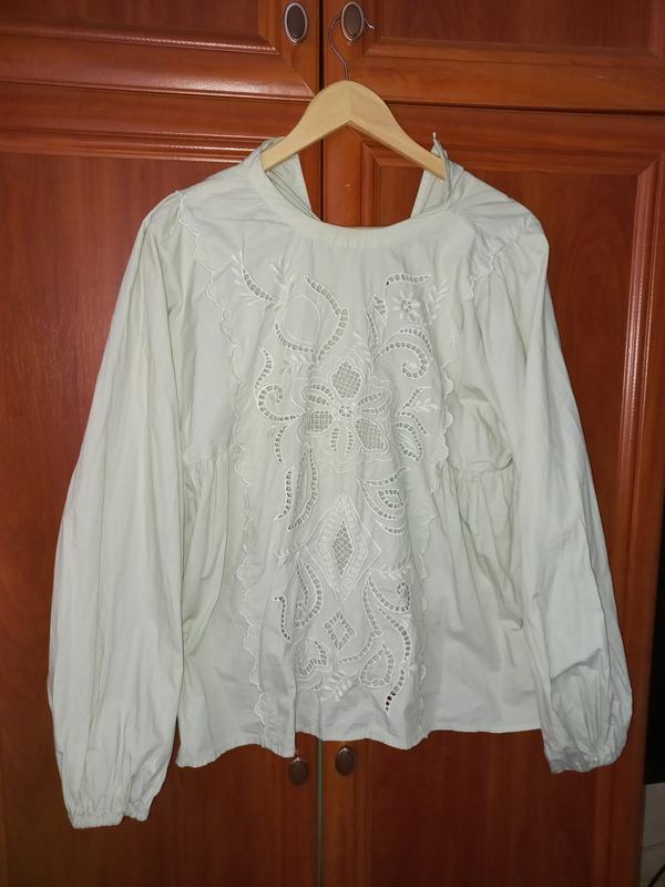 гарна блуза з прошви ніжний світло-фісташковий колір рукав на резинці об'єм грудей до 120 бедра- вільно довжина 63