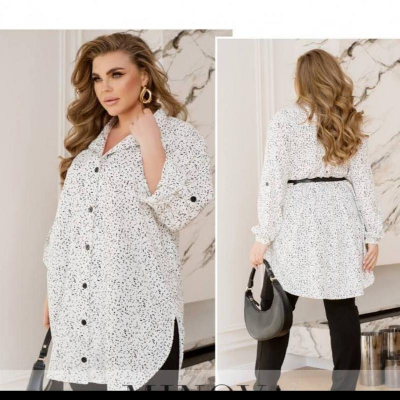 🥰 Новинка . 🥰 Блуза жіноча Мод. 2/64/мр 201 💰Ціна: 871 грн Тканина: софт Розміри: 54-56, 58-60, 62-64 Кольори: молочний Пасок НЕ входить в комплект. На моделі представлений розмір 54-56 Орієнтовні заміри готового виробу: 54-56 р-р: довжина блузки 100см, довжина рукава від горловини 70см, обхват рукава 50см, ОГ - 126см, ОТ -136см, OC -142смсм. 58-60 р-р: довжина блузки 103см, довжина рукава від горловини 71см, обхват рукава 52см, ОГ - 132см, ОТ -142см, OC -148см. 62-64 р-р: довжина блузки 105см, довжина рукава від горловини 72см, обхват рукава 54см, ОГ - 138см, ОТ -148см, OC -154см. modnob2d