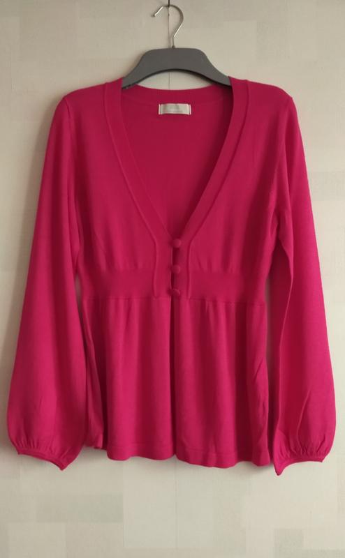 Мягкая, приятная на ощупь кофточка. Состав: 88% вискоза, 12% полиамид. Размер 46-48 / eur 42 / uk 14. Ширина плеч 34 см. ПОГ 44 см. ПОТ 36 см. Длина 58 см. Длина рукава 58 см.
