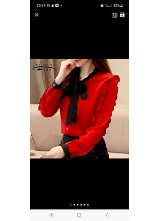 Виробник: Інший виробник Червона блуза з рюшами і галстучком