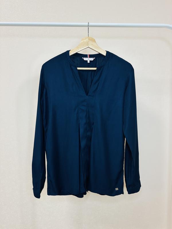 Блуза Tommy Hilfiger темно-синього кольору 100% віскоза Розмір 34, підійде на S-XS Металеве лого внизу Заміри: Довжина 57, ПОГ 47 см, рукав 58 см Стан відмінний, дефектів немає