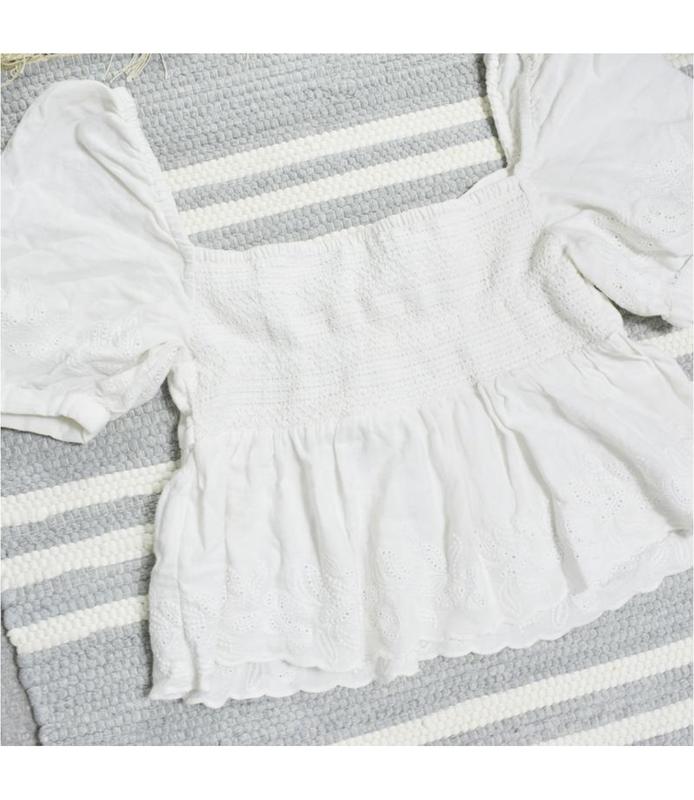 довжина від плеча 44 см, довжина по переду 32 см, рукав-27 см, пог 36-48 Колір - не дуже білий Стан вживаний, без бірки виміри "від-до" означають: "від" - обсяг в "лежачому" стані, "до" - максимальний розмір при розтяжці;