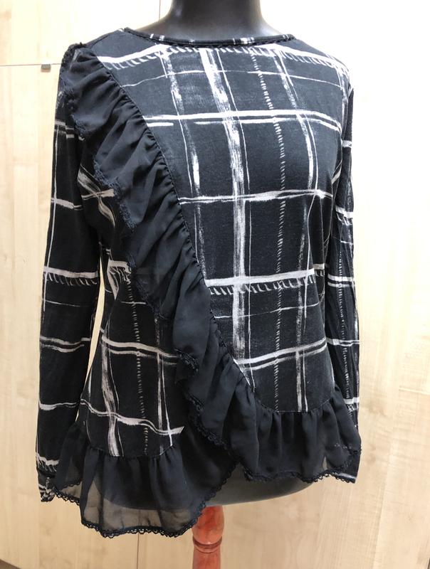 Заміри манекена: Розмір M/L Об‘єм плечей-89 см Об‘єм грудей-90 см Об‘єм талії-70 см Об‘єм стегон-96 см Заміри кофти: Довжина по спині-60см Довжина рукава-64 см НОП-35см НОГ-55см Мʼяка , приємна на дотик тканина (як футболка)+декор шифон з мереживом #32