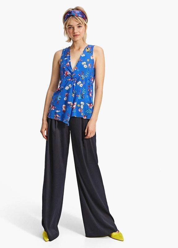 Легка якісна віскозна блуза топ без рукавів з квітковим принтом stradivarius