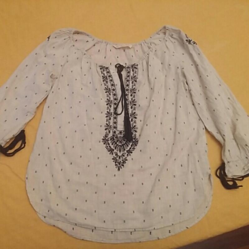 Нарядная блуза-вышиванка, на плечах тоже вышивка, на рукавах - кисточки со шнурками. Куплена в Европе, не носилась.