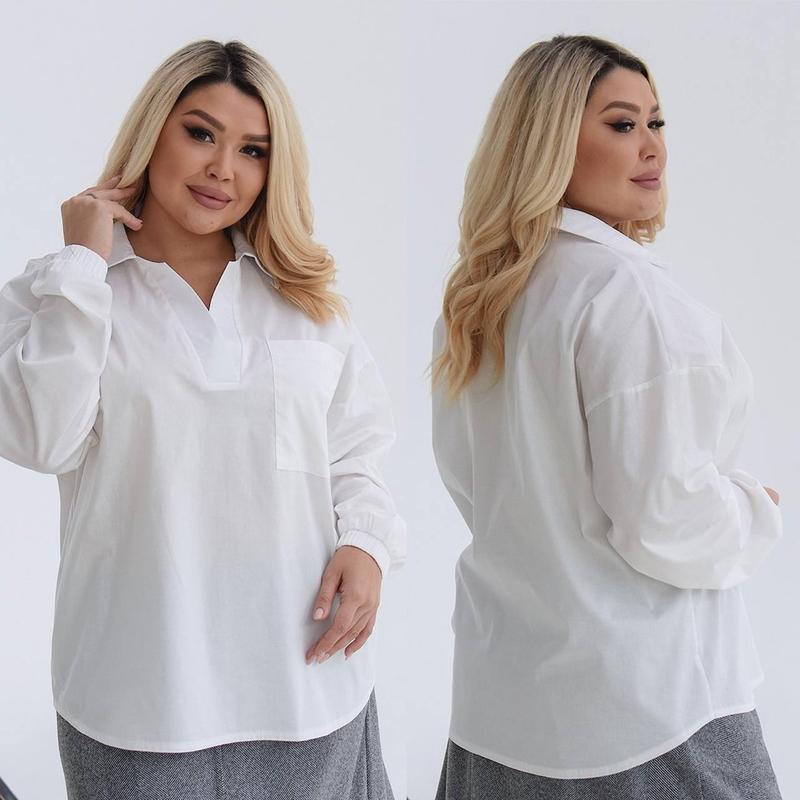 Стильна блуза яка потрібна саме тобі ❤️ Тканина: рубашечна Колір: білий ✅️ 48-50 Ог-122, от-124, ос-126, довжина 67 см ✅️ 52-54 Ог-130, от-132, ос-134, довжина 69 см ✅️ 56-58 Ог-138, от-140, ос-142, довжина 69 см ✅️ 60-62 Ог-146, от-148, ос-150, довжина 71 см ✅️ 64-66 Ог-154, от-156, ос-158, довжина 73см 🏷 730 грн