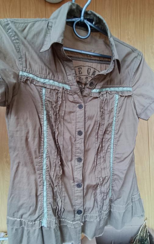 блузка жіноча защитного кольору розм.S тоненька приємна легенька з батисту з переду х\б мереживо на спині - малюнок -див.фото Б\у але гарному стані