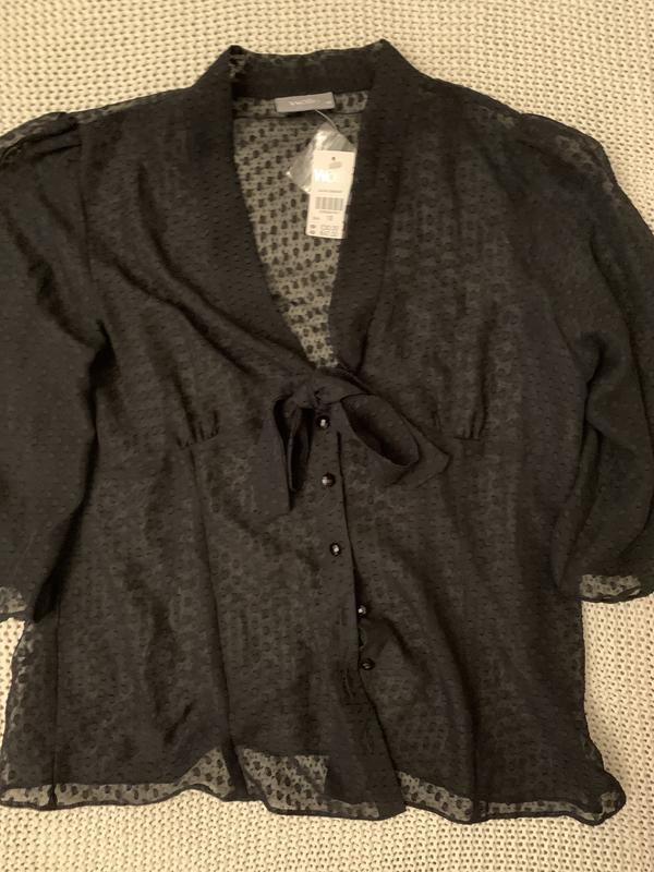 Літня невагома блуза на ґудзиках. Декольте охайно підкреслює комір- бант. Прозорість тканини додає блузці вишуканості та шарму.