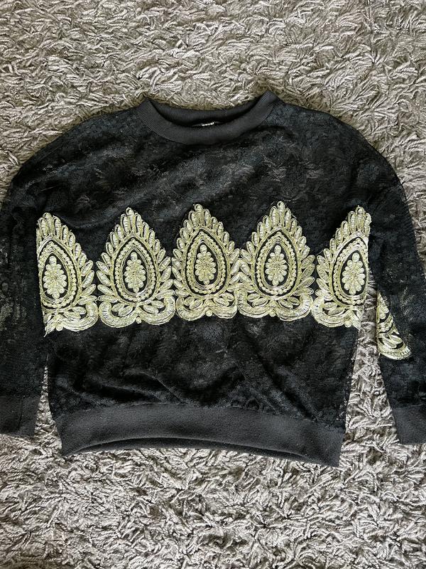 Клітина у сітку, без жодних дефектів Візерунки нашиті (золота нитка) В комплекті є майка! Розмір хс-с Неймовірно гарно під шкіряні шорти/лосини/юбки ! Фото вживу останнє (гортайте в сторону)