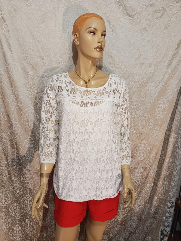 довжина -65;пог-56; плечі -40;рукав-48;низ-64;блузка ажурна, під низом маєчка; ззаду гудзики.